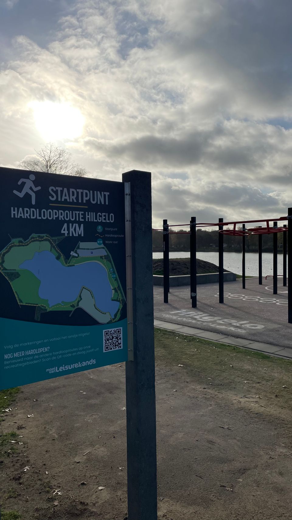 De hardlooproute begint en eindigt bij urban sportspark Hilgelo, waar je de toestellen kunt gebruiken voor een warming-up of workout. Het is een grote, veelzijdige beweeglocatie die je meteen herkent wanneer je vanaf de parkeerplaats het gebied op loopt. Ben je op de fiets gekomen? Dan heb je al een uitstekende warming-up in de benen!