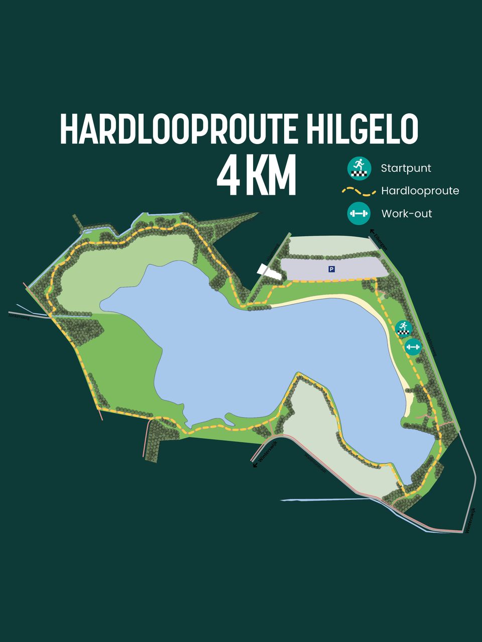 Niet elke dag is een stranddag maar op Hilgelo is het toch altijd gezellig. Veel mensen uit de buurt komen naar Hilgelo voor hun dagelijkse beweging. Groepen scholieren of zwemmers hebben Hilgelo ook gevonden als ideale buiten beweeg locatie. Ben je klaar voor de start? Bekijk het routebord, kies je richting en zet hem op! Wees niet bang dat je verdwaald raakt, markeringen op paaltjes wijzen je de weg.