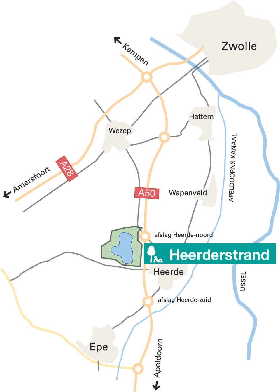Recreatiegebied Heerderstrand is voor automobilisten goed bereikbaar. Neem vanaf de A50 afslag Heerde (afslag 29) en vervolg in de richting Heerde. Volg vervolgens de borden 'Heerderstrand'.